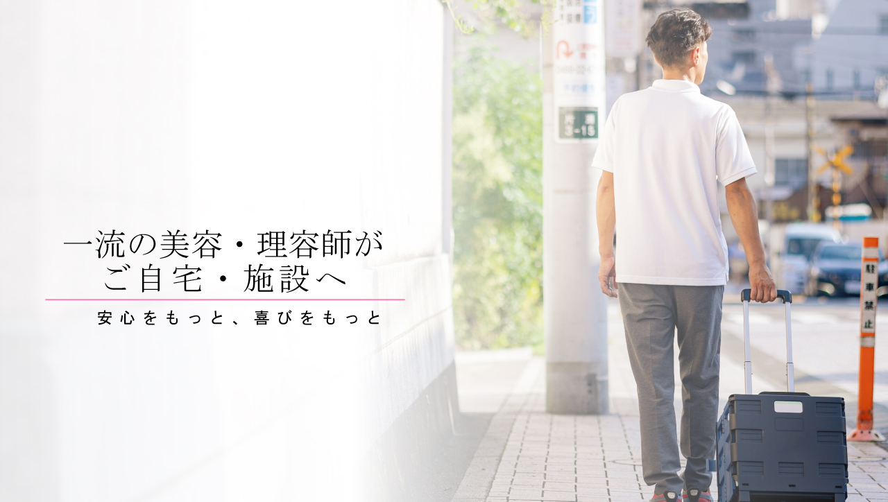 ご高齢者・障がい者・ケガ・出産などの理由で、外出が困難の方への、ご自宅や施設まで出張訪問をし、髪の毛を切ったり・毛染めなどを中心とした理美容を受けられる、とても便利なサービスとなっています。