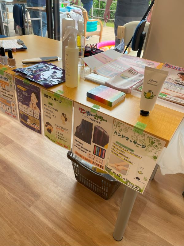 施設様の協力もあり【美容祭】【秋祭り】【夏祭り】などの行事ごとで、お湯で流せる水性ネイルやワンデーカラーなど、普段とは違う1日を楽しんで頂いています。